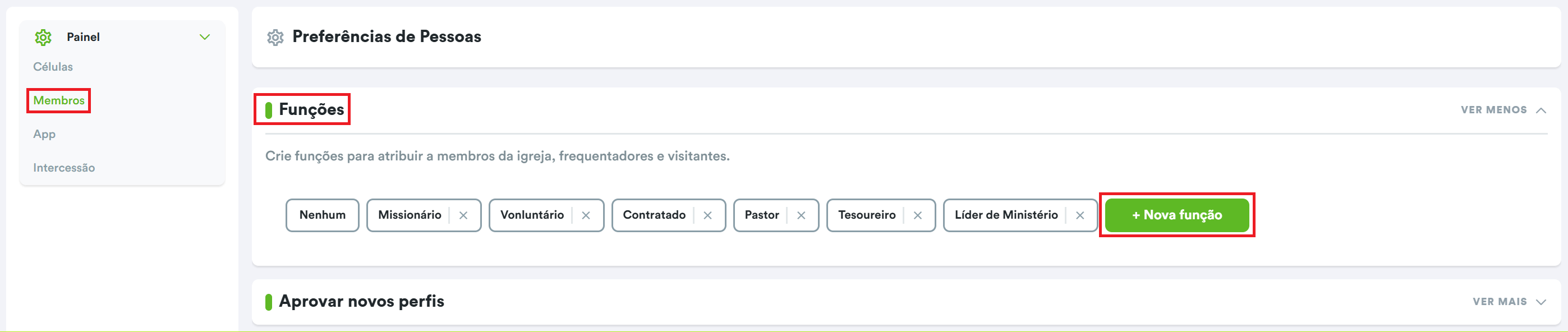 Para criar funções, é necessário acessar o Painel v2 > Preferências > Membros > Funções