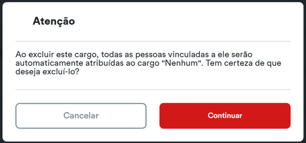 Ao selecionar Excluir, a seguinte mensagem deve aparecer:.