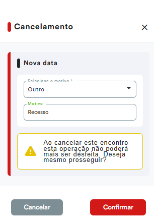 - Em reuniões da célula, selecione a data que deseja informar o recesso, e opções.