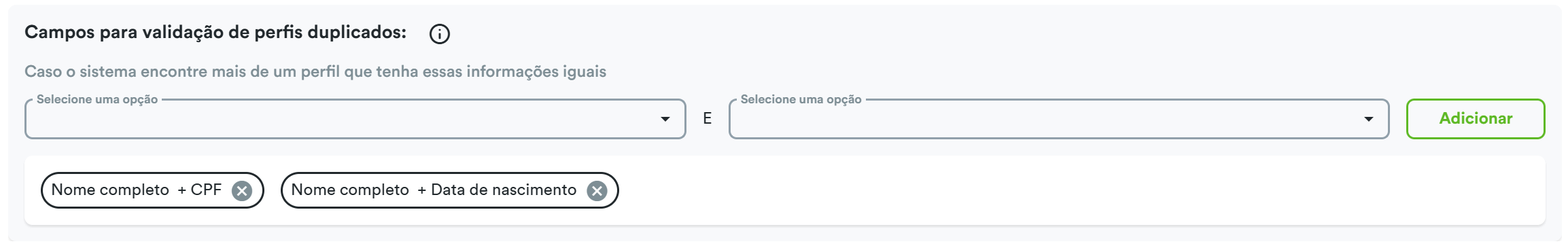 - Configure os campos que ajudarão a identificar perfis duplicados, com por exemplo: