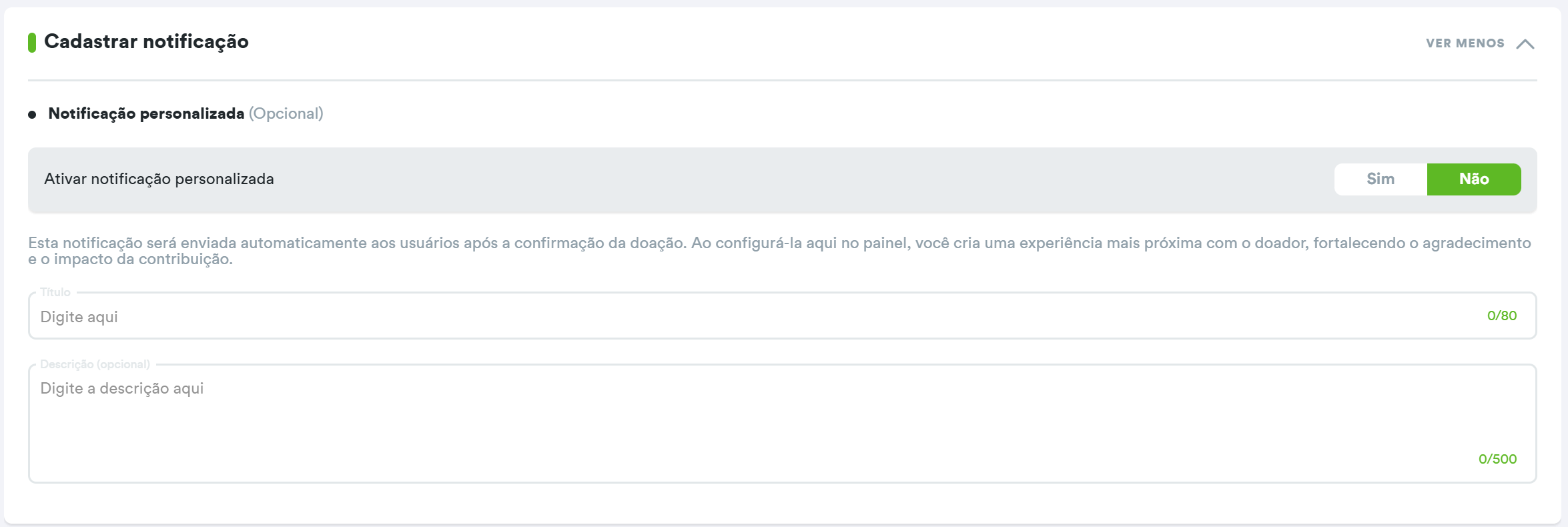 Agora também é possível cadastrar uma notificação personalizada para que o usuário receba assim que a doação for realizada e confirmada pela plataforma.