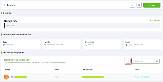 Além disso, você pode visualizar a lista de crianças, incluindo: