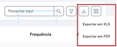 Nas duas áreas há a possibilidade de exportação em XLS, porém somente na área de Participantes há a opção de exportação em PDF.
