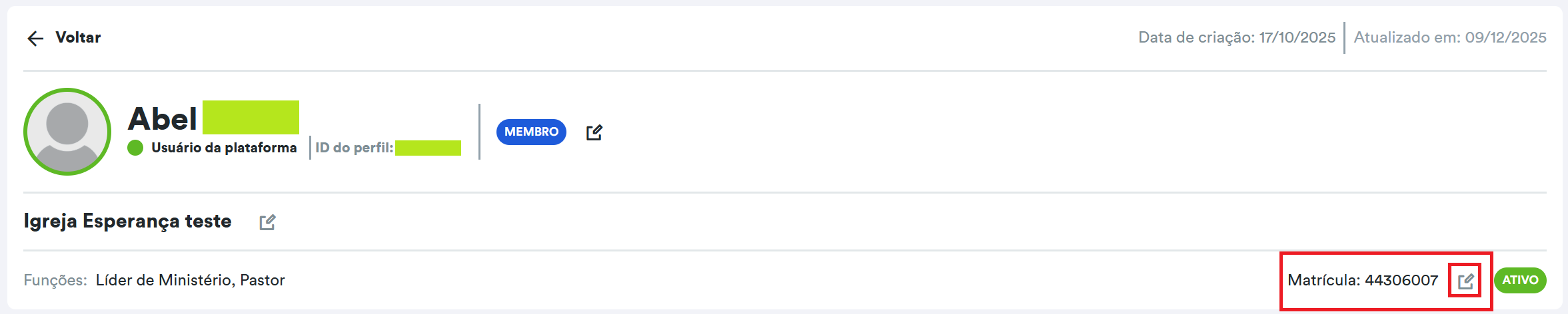 Também terá a opção de "Ver Perfil" que direcionará ao perfil do membro com a matrícula já existente.