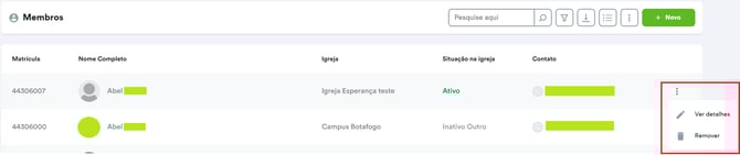 2. Após encontrar o cadastro que deseja, clique nos três pontinhos no canto direito da lista e em "Ver detalhes":